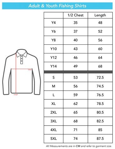 Novelty fish measuring scale down left sleeve, and team name down right sleeve